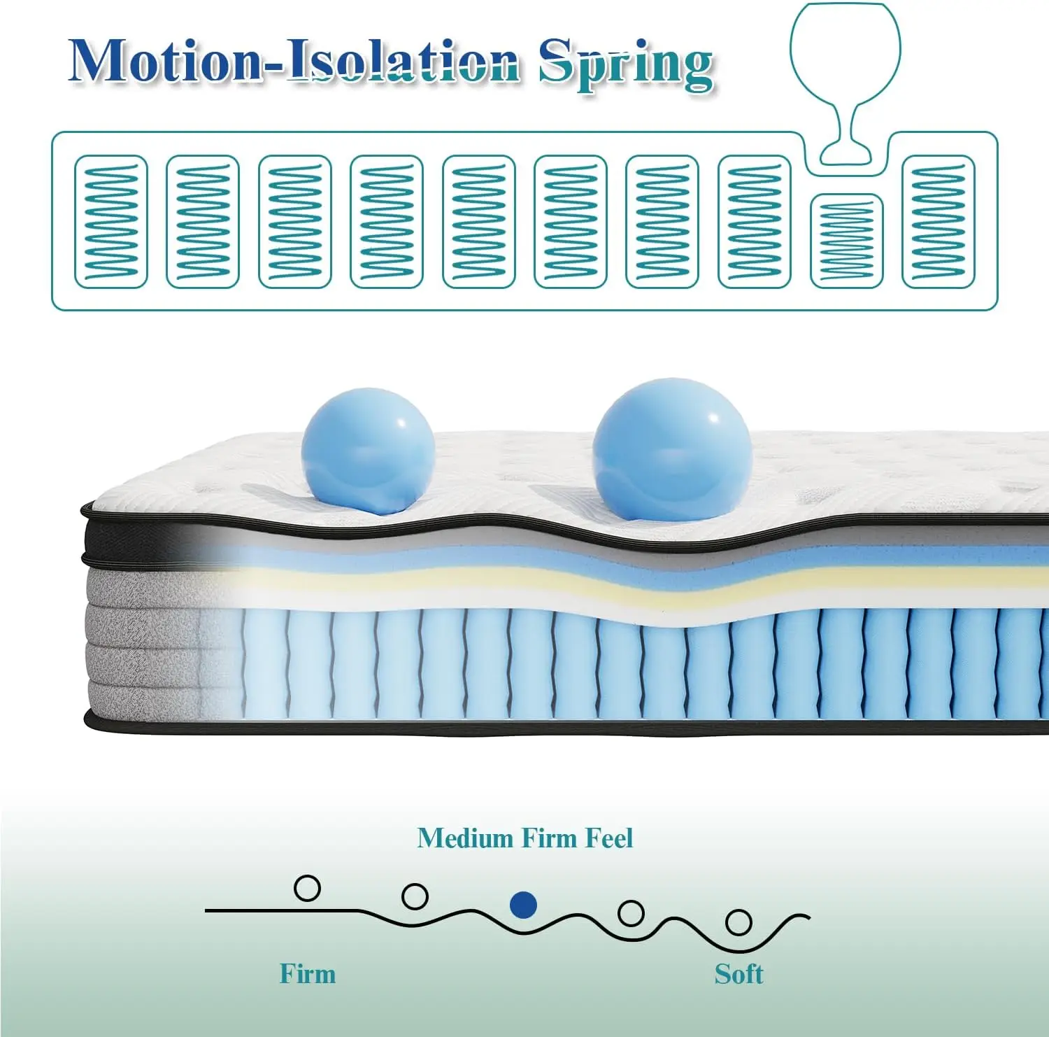 A breathable 3D knitted jacquard cover enhances temperature regulation by allowing heat to escape and moisture to wick away from the body. Inside, CertiPUR‑US certified memory foam layers provide safe, low‑VOC comfort that conforms to your curves, while slow‑rebound foam and pocket springs reduce motion transfer and noise so both partners can sleep undisturbed.