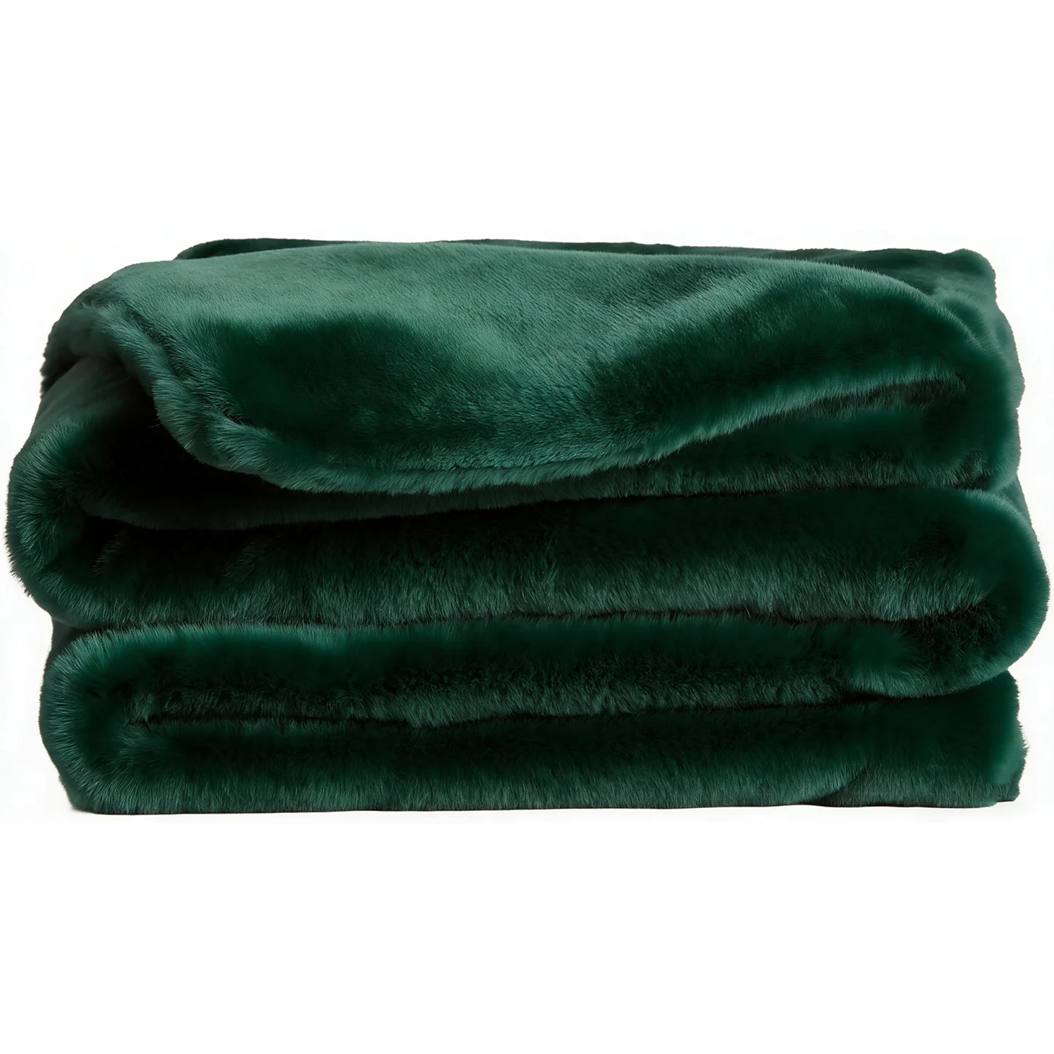 Faux Fur Rabbit Throw Blanket — 600 GSM Warm & Fluffy (Green)