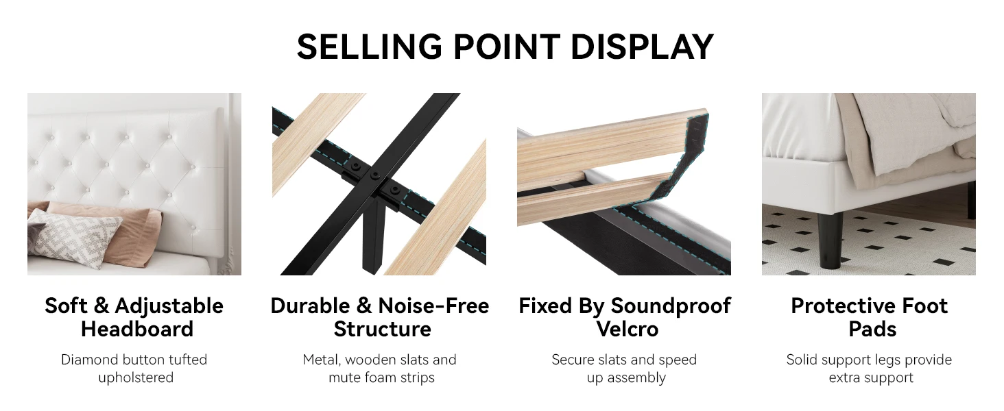 Noiseless for Comfortable Sleep: Our bed frames are made for noiseless use and have no squeaks. Each joint can be connected accurately. The bed frame has added silent strips to produce no squeaking sound