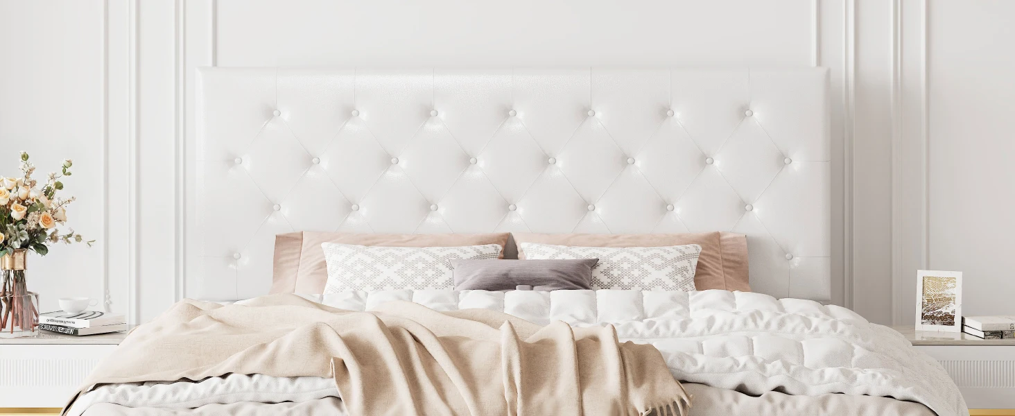 Adjustable Headboard: 45.2 to 49.2 inches headboard gives you more options for mattress thickness.Suitable mattress thickness: 8-14 inches. The bed frame is filled with dense and soft foam padding to give you an excellent and comfortable experience