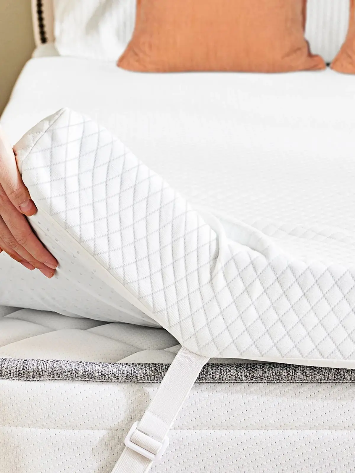 【Removable Soft Cover】The topper comes complete with a high-quality, Removable Soft Cover. Crafted from skin-friendly, breathable polyester, it’s gentle even for sensitive skin and enhances airflow. Equipped with strong elastic straps and an anti-slip backing, the cover stays securely in place on your mattress, preventing any shifting. Plus, a durable metal zipper allows for easy removal and machine washing, keeping your sleeping environment fresh and hygienic effortlessly.