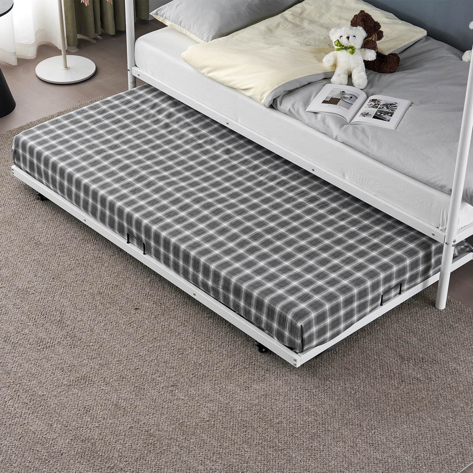 2. Space-Saving Design: The trundle bed rolls out smoothly on lockable casters, and can be tucked away when not in use to ensure your room stays clutter-free. Ideal for families with multiple children or frequent guests.