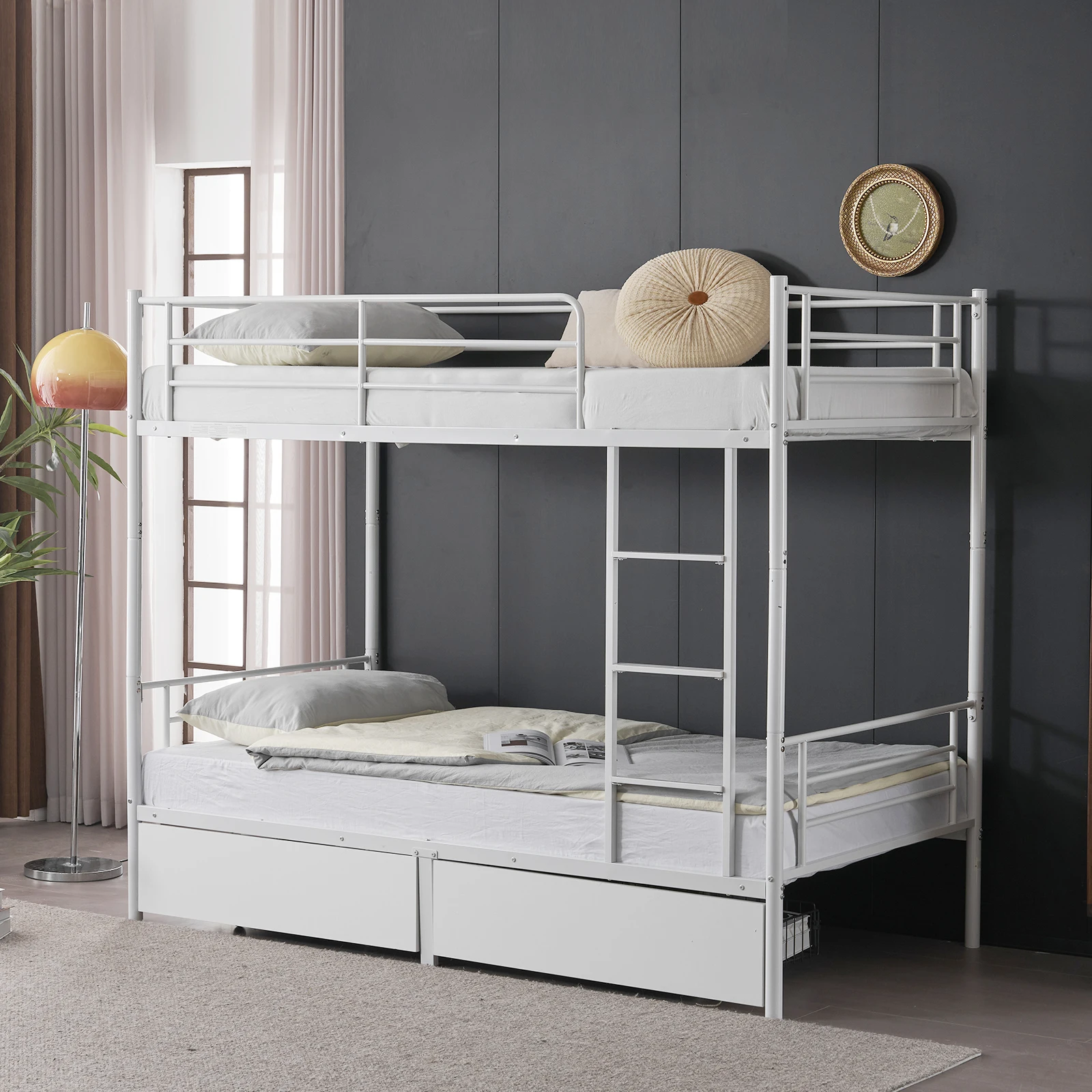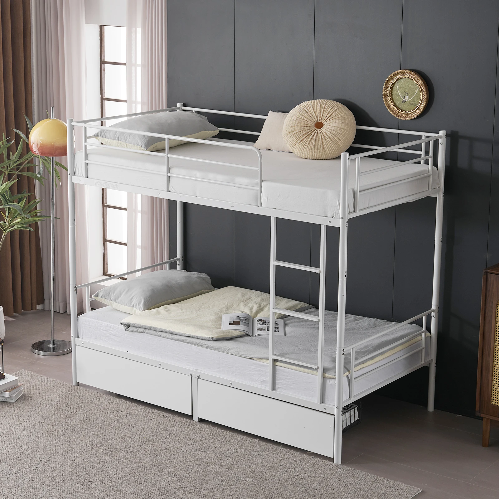 4. Sturdy & Safe: Sleep with peace of mind on a solid metal frame with a rust-resistant finish, strong enough to support 400 lbs on the upper bunk and 600 lbs on the lower.